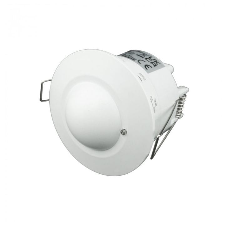 Czujnik ruchu mikrofalowy wpuszczany w sufit, model CM-3B od ECOLIGHT w kolorze białym.