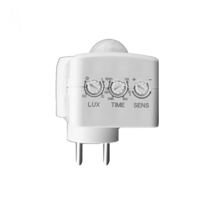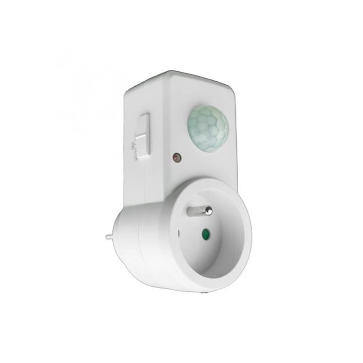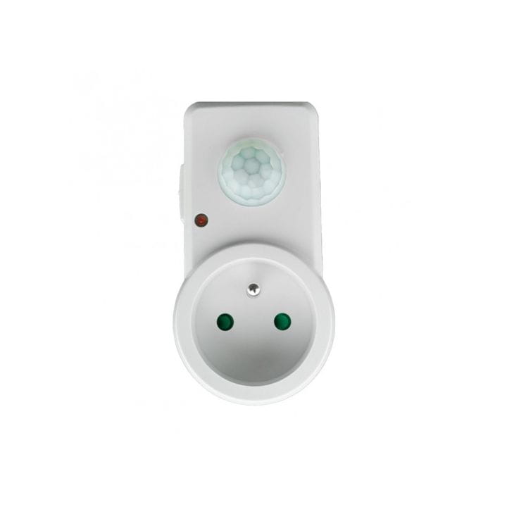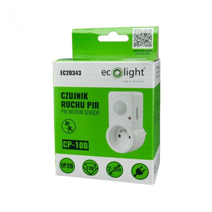 Czujnik ruchu PIR do gniazdka firmy ECOLIGHT model CP-10B, w kolorze białym.