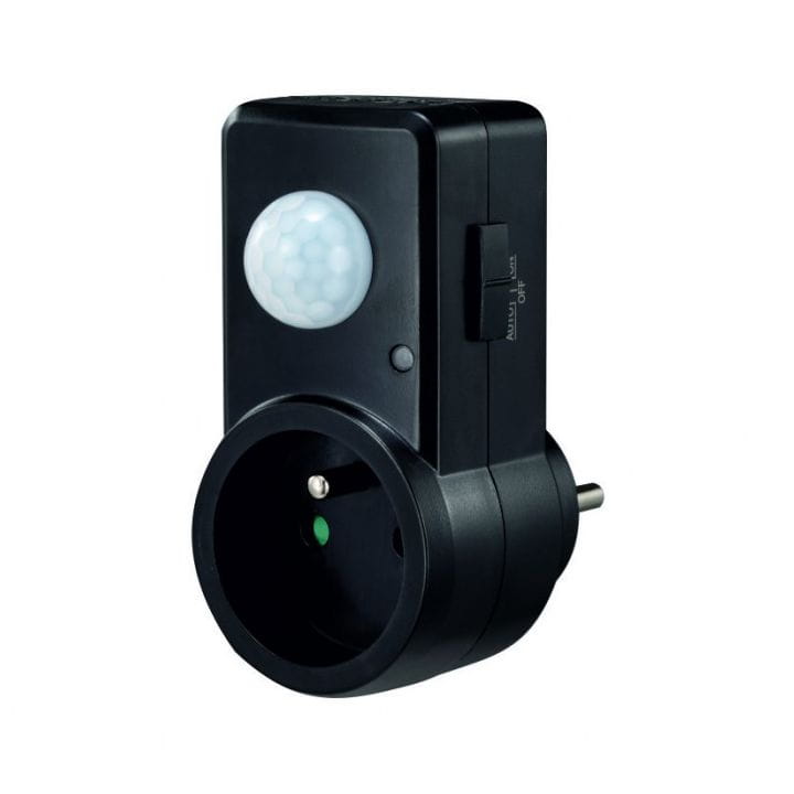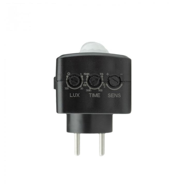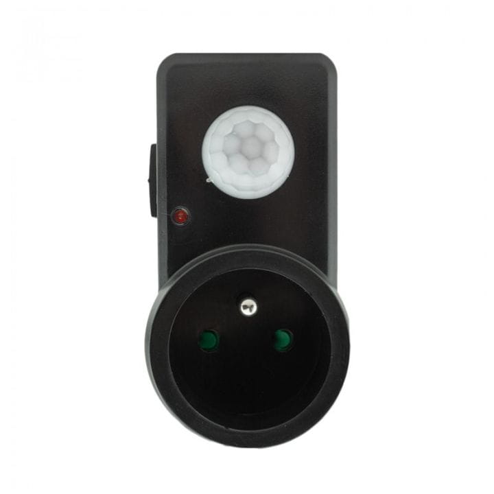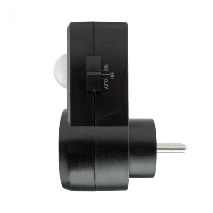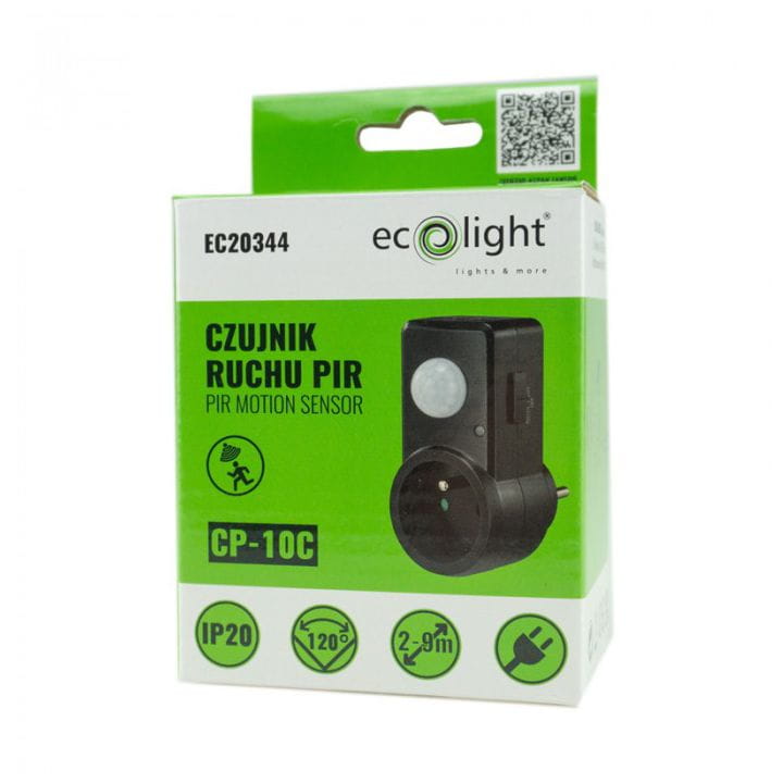 Czujnik ruchu PIR do gniazdka firmy ECOLIGHT model CP-10C, w kolorze czarnym.