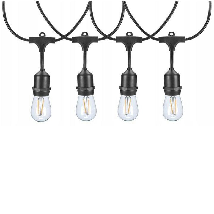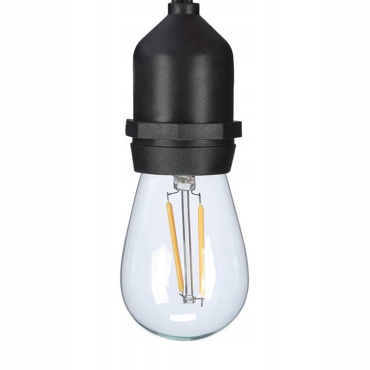 Girlanda o długości 15 metrów. W zestawie znajduje się 15 żarówek LED E27 o mocy 2W w ciepłej barwie światła. Kabel zakończony jest wtyczką z możliwością przedłużenia o kolejny zestaw. Girlanda sprawdzi się jako dekoracyjne oświetlenie tarasu, ogrodu.