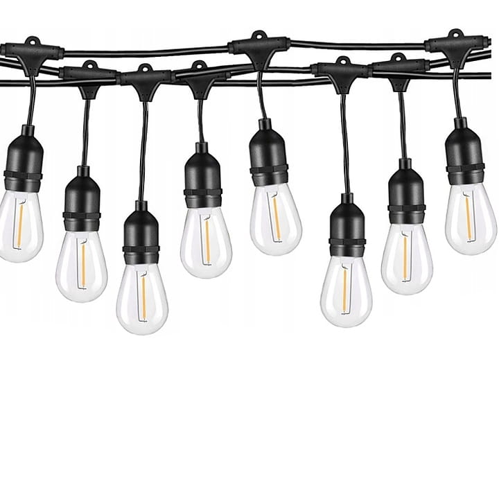 Girlanda ogrodowa oświetleniowa dekoracyjna z żarówkami w zestawie E27 LED Filament G45 w przyjemnej ciepłej barwie światła 2700K, każda żarówka o mocy 1 Watt na napięcie 230V.