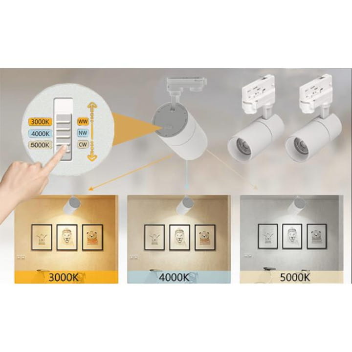 Reflektor na szynę 1-fazową o mocy 10W to innowacyjne rozwiązanie oświetleniowe, które wyróżnia się nie tylko swoją funkcjonalnością, ale także wszechstronnością w dostosowywaniu barwy światła do potrzeb użytkownika. Urządzenie wyposażone jest w praktyczny przełącznik umieszczony z tyłu obudowy, który umożliwia łatwą zmianę temperatury barwowej światła. Dzięki tej funkcji możemy płynnie przechodzić pomiędzy ciepłą, neutralną a zimną barwą światła.