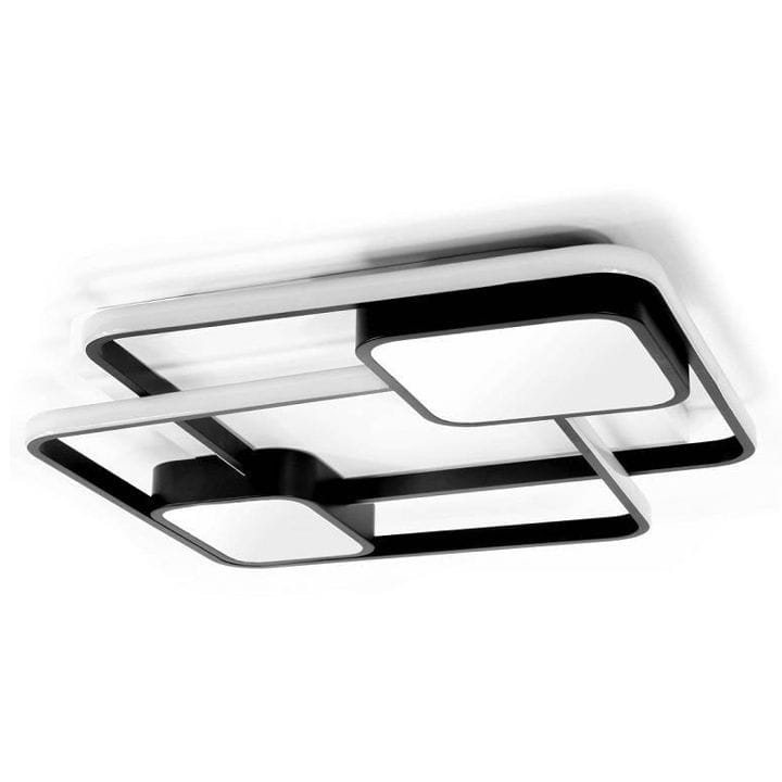 Czarna lampa ledowa marki SYNTHRON z serii Linie i Kwadraty przy sufitowa, przeznaczona do oświetlenia pomieszczeń ciepłą, neutralną lub zimną barwą światła.