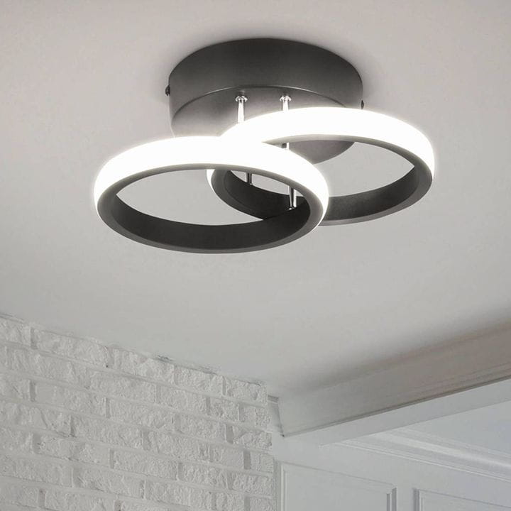 Lampa LED sufitowa o mocy 18W, jasności 1440lumenów, w barwie światła neutralnej, w kształcie czarnym okręgów.