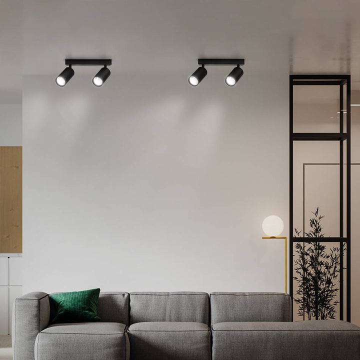 Szyna LED natynkowa przystosowana na 2 żarówki z mocowaniem GU10, w kolorze czarnym.