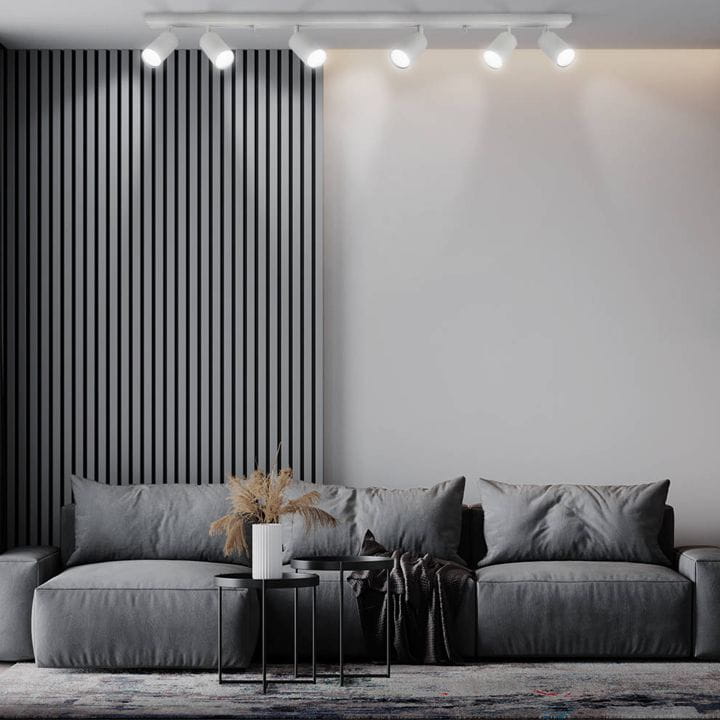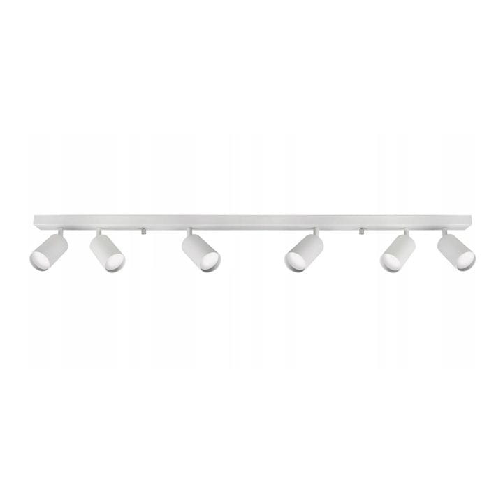 Szyna LED w kolorze białym, zaprojektowana na 6 żarówek z gwintem GU10.