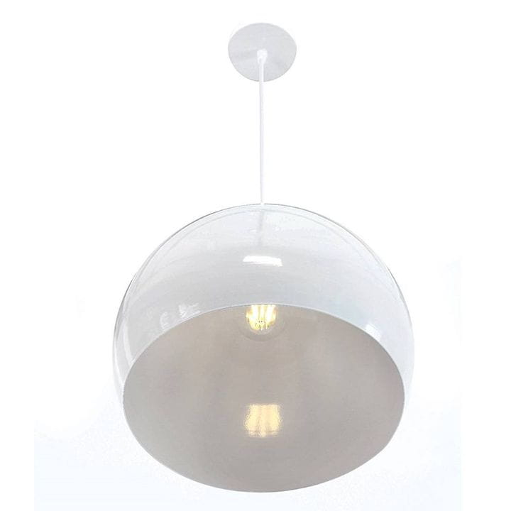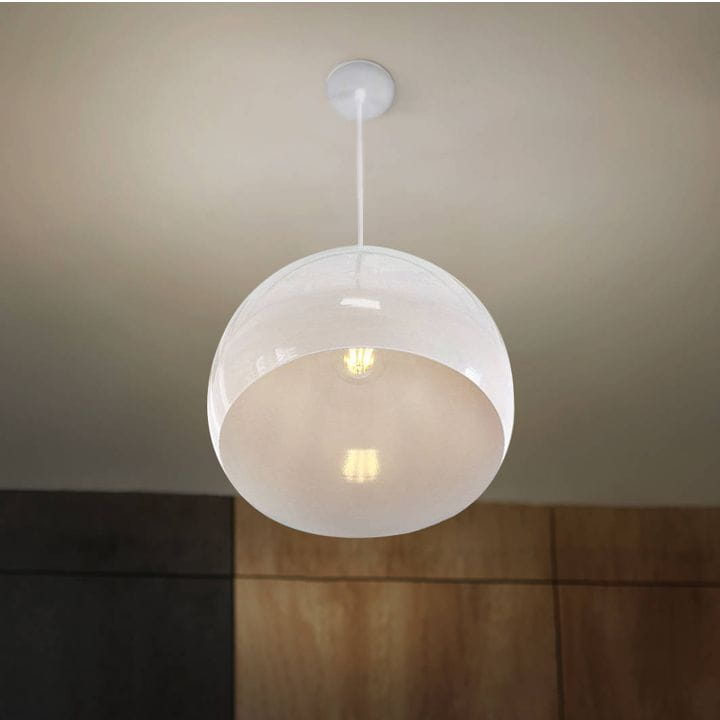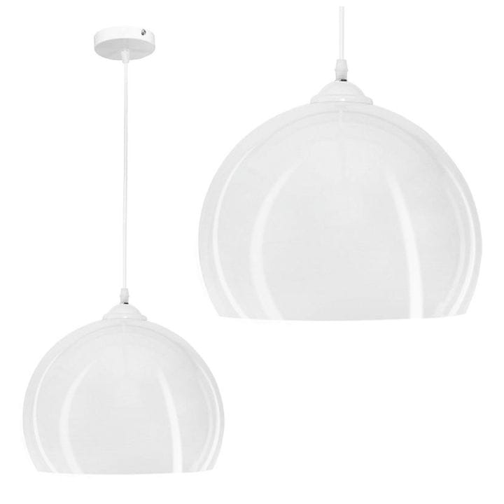 Lampa wisząca sufitowa LED zaprojektowana na żarówkę z mocowaniem E27, o średnicy klosza 29cm, w kolorze białym.