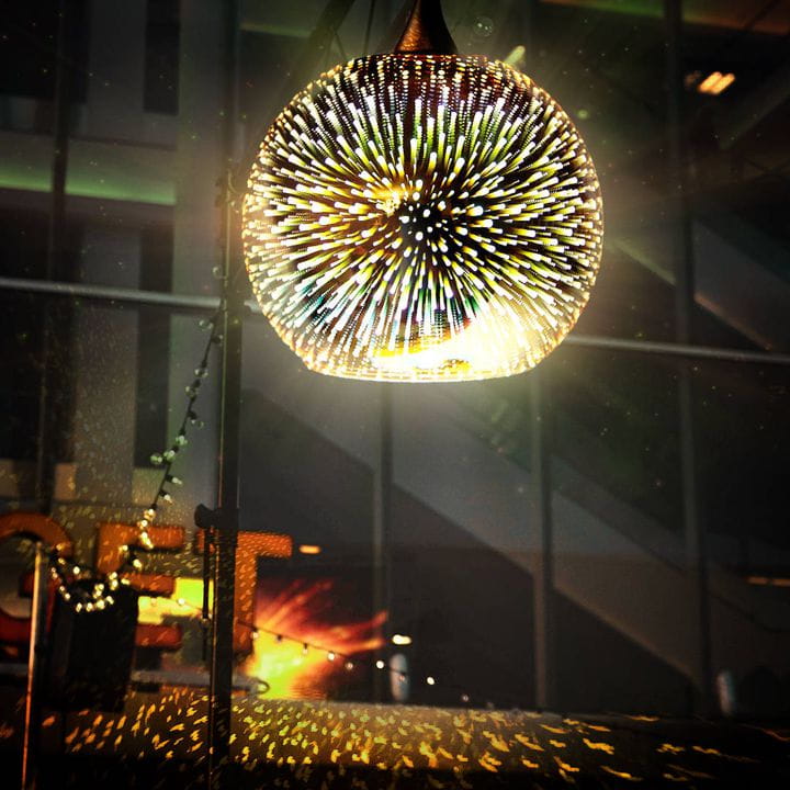 Lampa przystosowana jest na żarówkę E27. Po włączeniu, lampa będzie świecić efektem dyskotekowym. Sprawdzi się do nowoczesnych wnętrz. Może służyć jako dodatkowy element dekoracyjny.