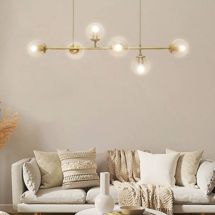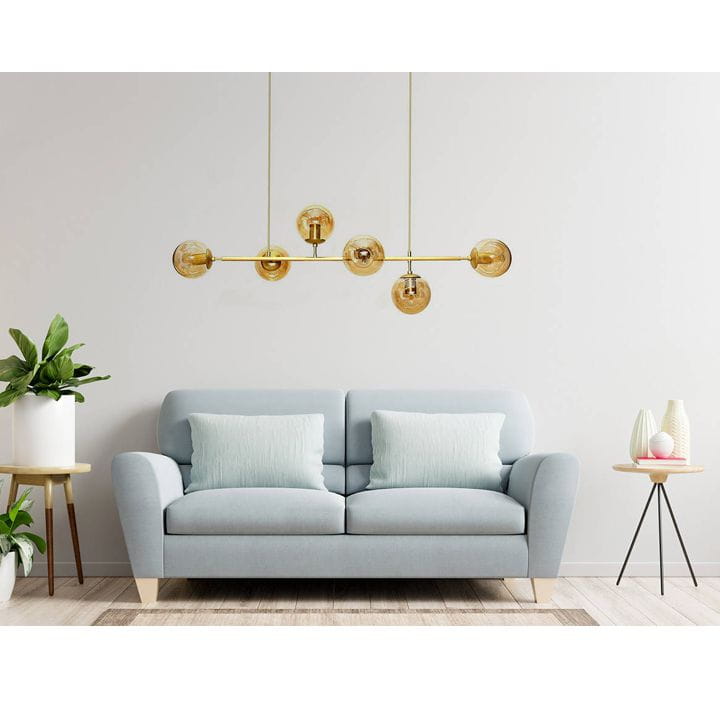 Moris to lampa wykonana z najwyższą dbałością o każdy szczegół. Składa się z sześciu metalowych kul, które umieszczone są na złotym drążku. Lampę wykonano ze stali, która została kilkukrotnie pokryta warstwą antystatycznej emalii. Dało to zadowalający efekt w użytkowaniu, lampa odporna jest na zarysowania, otarcia i uszkodzenia mechaniczne. Lampa Moris swoim wyglądem wpasuje się w nowoczesne wnętrza.