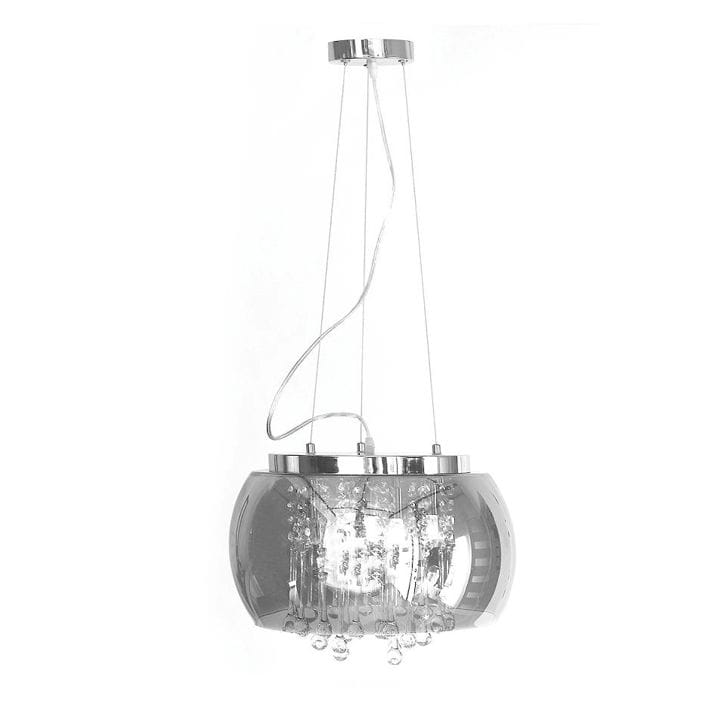 Lampa zaprojektowana na pięć żarówek z trzonkiem G9. Klosz lampy posiada efekt przydymionego lustra. Z powodzeniem można zamontować lampę w klasycznych i nowoczesnych pomieszczeniach. Szklane krople wody to główny element dekoracyjny lampy. Dodają nietuzinkowego efektu świetlnego. Lampę wiszącą można zamontować w kuchni, salonie, sypialni, a także w restauracji. Długość zawiesi jest regulowana, do 100cm wysokości.