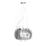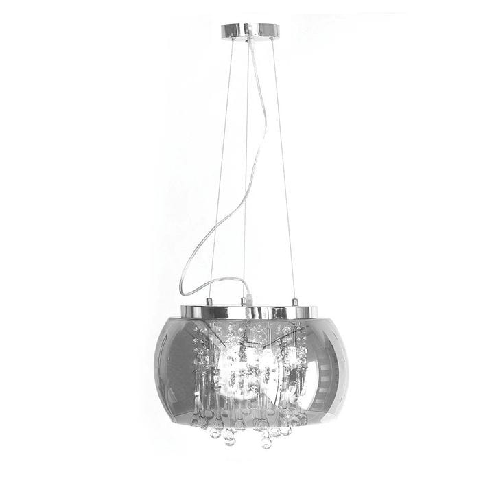 Lampa zaprojektowana na 6 żarówek z trzonkiem G9. Wyróżnia się wzornictwem i prostotą kształtu. Klosz lampy posiada efekt przydymionego lustra, dzięki czemu lampa przyciąga wzrok. Odpowiednia do klasycznych, jak i nowoczesnych pomieszczeń. Szklane krople wody dodają nietuzinkowego efektu świetlnego. Z powodzeniem lampę można zamontować w kuchni, salonie, sypialni, a także w restauracji. Długość zawiesi jest regulowana, do 100cm wysokości.