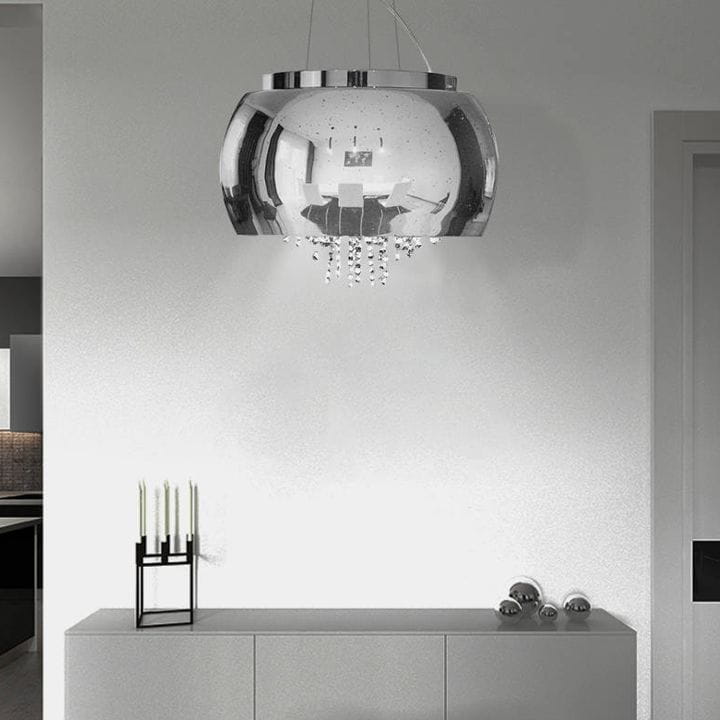 Lampa posiada szklane korale, które są głównym elementem dekoracyjnym lampy. Dodaję one nietuzinkowego efektu świetlnego. Lampa zachwyca swoim wzornictwem. Będzie odpowiednia do klasycznych i nowoczesnych pomieszczeń. Może być zamontowana w salonie, w sypialni, a nawet w restauracji, czy w biurze.