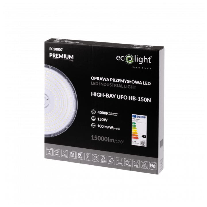 Lampa magazynowa z serii Premium marki ECOLIGHT, działająca na technologii LED, zapewnia imponującą jasność wynoszącą 15 000 lumenów, Posiada szeroki kąt świecenia 120°, który umożliwia równomierne oświetlenie większych obszarów, eliminując konieczność wielu lamp. Jest to szczególnie przydatne w przypadku oświetlania dużych powierzchni, takich jak magazyny, hale produkcyjne i inne przestrzenie przemysłowe. Lampa HighBay Premium Ecolight objęta jest 3-letnią gwarancją.