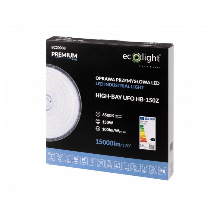 Lampa magazynowa z serii Premium marki ECOLIGHT to nowoczesne rozwiązanie oparte na technologii LED, które zapewnia imponującą jasność osiągającą 15 000 lumenów. Dzięki szerokiemu kątowi świecenia wynoszącemu 120°, lampa ta równomiernie oświetla większe obszary, eliminując potrzebę stosowania wielu lamp. Jest to szczególnie przydatne przy oświetlaniu dużych powierzchni, takich jak magazyny, hale produkcyjne oraz inne przestrzenie przemysłowe. Lampa HighBay Premium Ecolight objęta jest 3-letnią gwarancją, co stanowi dodatkową gwarancję jakości i niezawodności produktu.