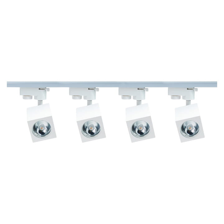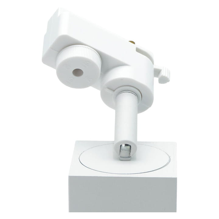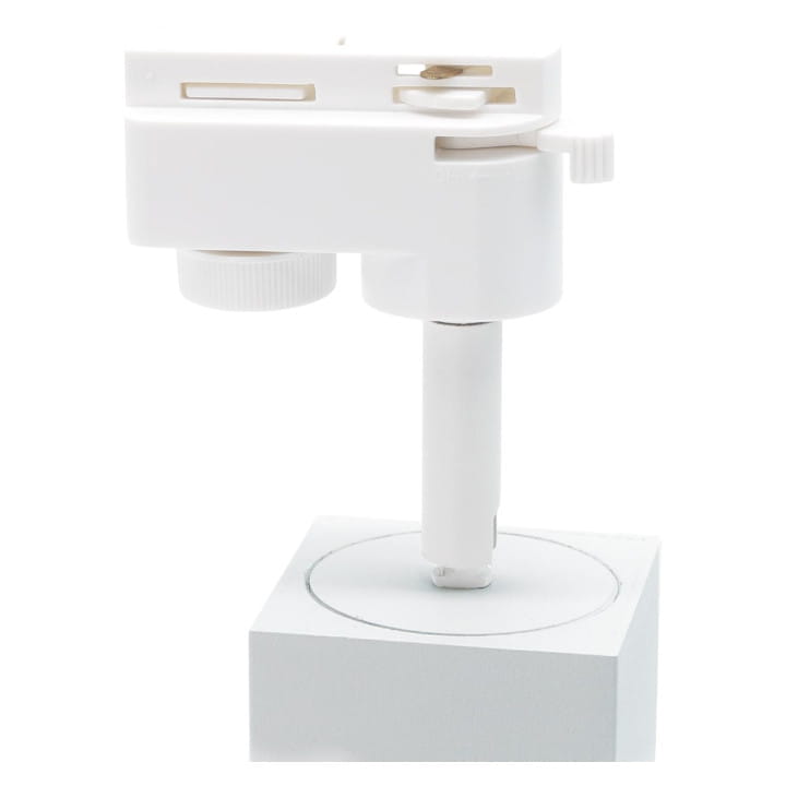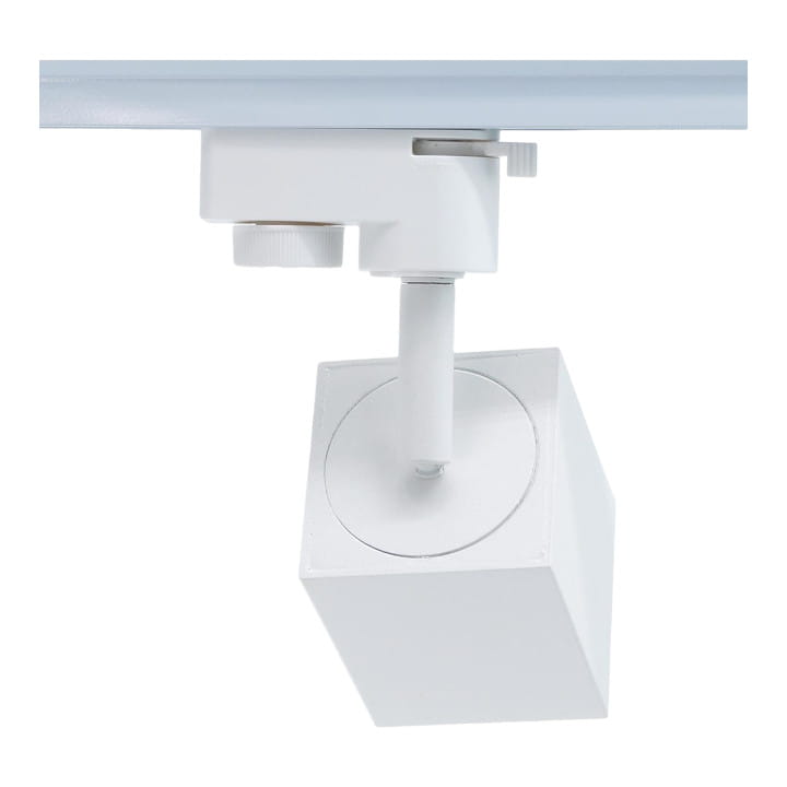 Reflektor Brick GU10 w kształcie prostopadłościanu na szynę 1-fazową, w białym kolorze.