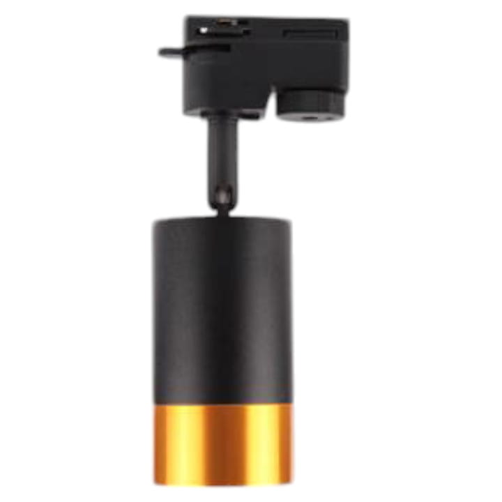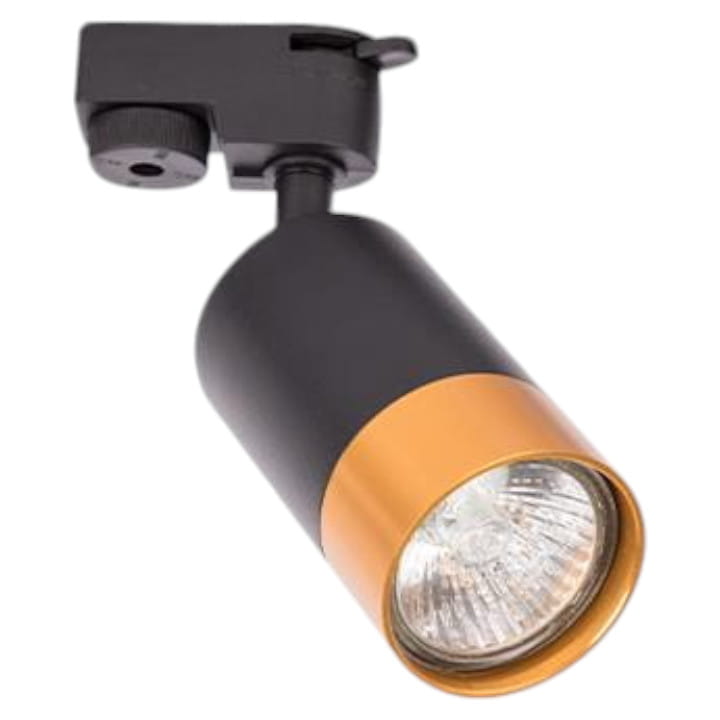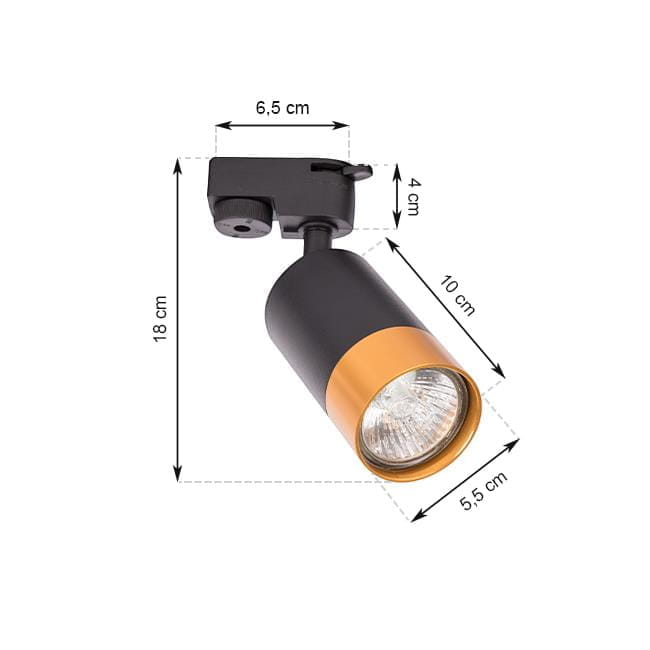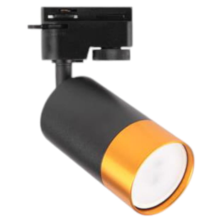 Reflektor na szynę 1-fazową charakteryzuje się nowoczesnym i stylowym designem. Korpus reflektora jest w kolorze czarnym, natomiast przednia część, otaczająca źródło światła, jest złota. Ta kombinacja kolorów nadaje reflektorowi elegancki wygląd, który dobrze komponuje się w różnych wnętrzach. Lampa może być doskonałym wyborem do nowoczesnych wnętrz, takich jak salony, kuchnie, biura, czy galerie. Ruchoma głowica zapewnia elastyczność w oświetlaniu konkretnego obszaru, podczas gdy wymienny moduł GU10 pozwala na łatwą zmianę żarówki.