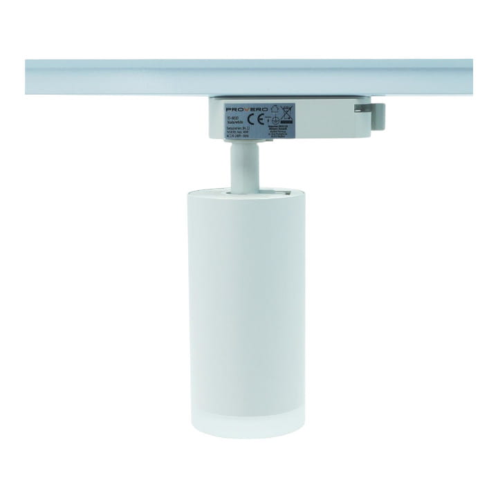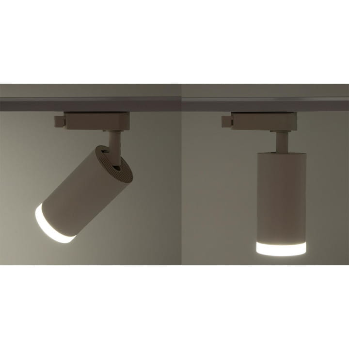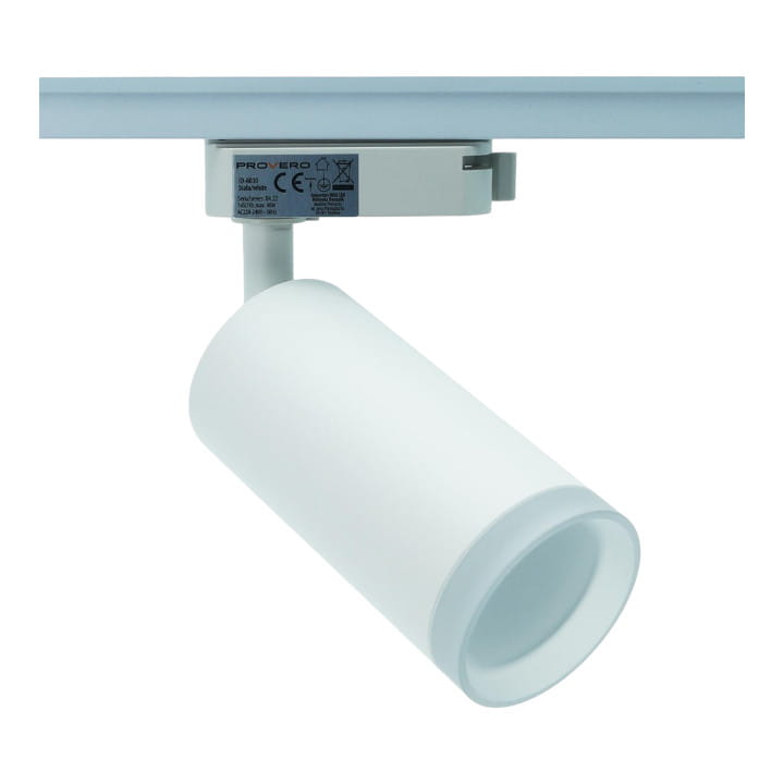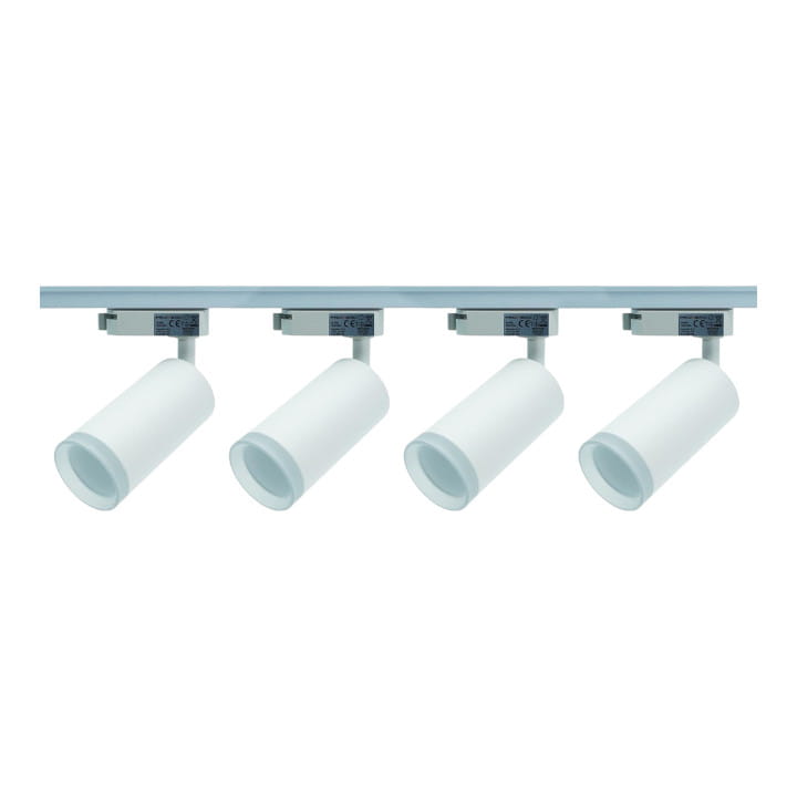 Oprawa na szynę 1-fazową Luminus GU10 biała, w kształcie walca.