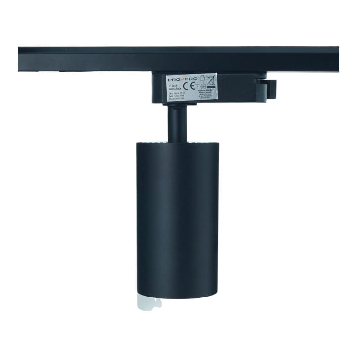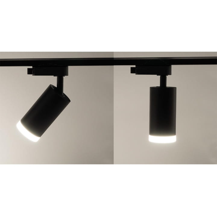 Oprawa na szynę 1-fazową Luminus GU10 w kształcie walca, w czarnej obudowie.