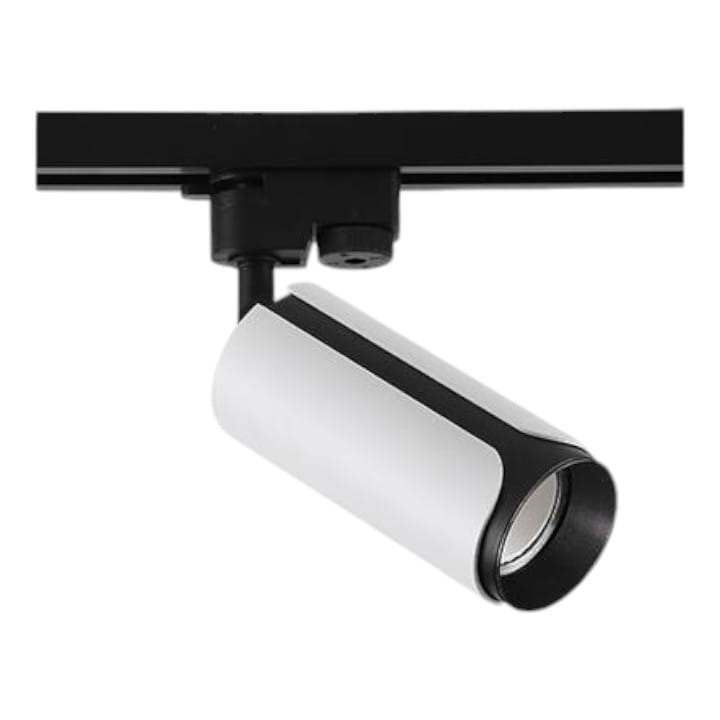 Lampa na szynę 1 -fazową model Sento o wymiarach 58mm x 100mm, na żarówkę z gwintem GU10, w kolorze biało - czarnym.