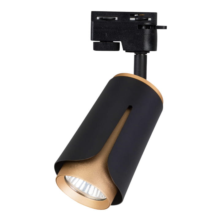 Reflektor na szynę 1-fazową model XD-IK252B w kolorze czarno złotym, przystosowany na żarówki GU10.