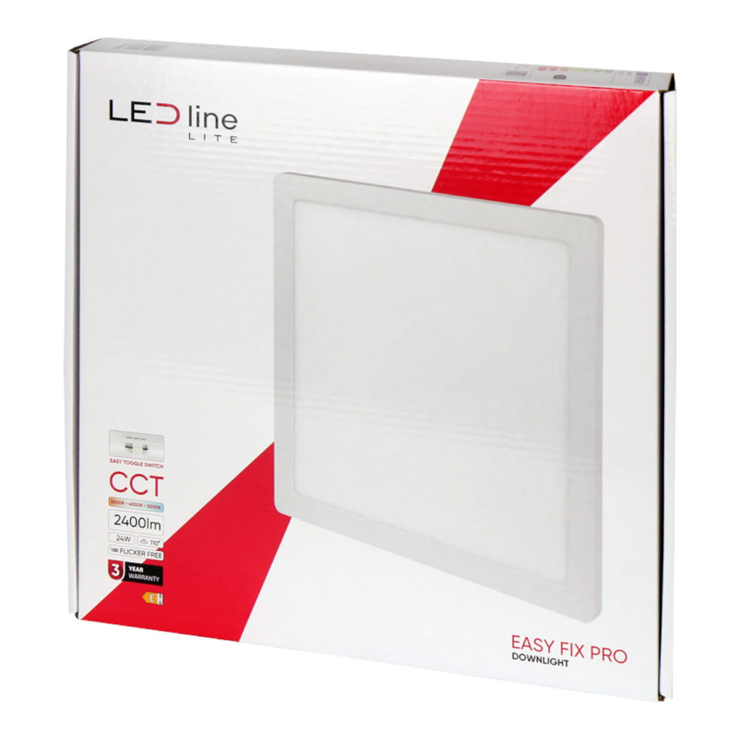 Kwadratowy panel sufitowy ledowy Easy Fix PRO o mocy 24W, jasności 2400 lumenów, z możliwością zmiany barwy światła od 3000K do 5000K.