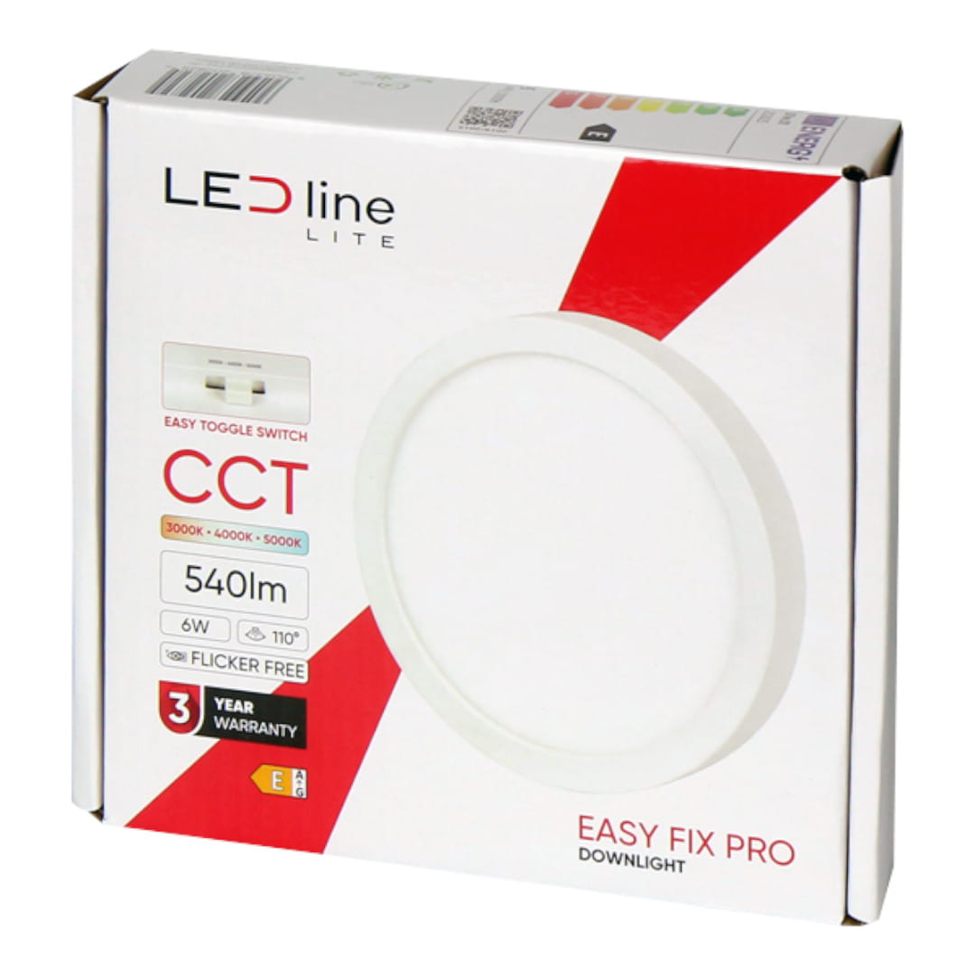 Panel sufitowy LED EASY FIX PRO o mocy 6W, jasności 540 lumenów, z regulacją barwy światła od 3000K do 5000K.