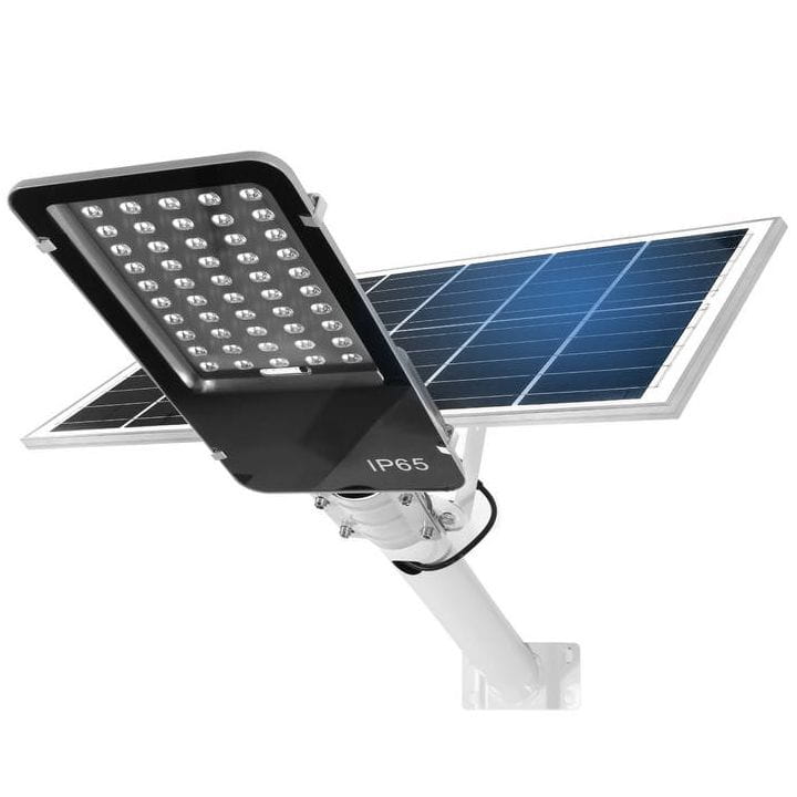 Lampa uliczna solarna o mocy 500W, z dodatkowym panelem solarnym, pilotem oraz uchwytem do zamocowania. Lampa została wyposażona w diody LED, które zapewniają doskonałą widoczność w znacznej odległości od źródła światła. Będzie więc idealna do oświetlenia parków, ulic, ogrodów, placów oraz parkingów.