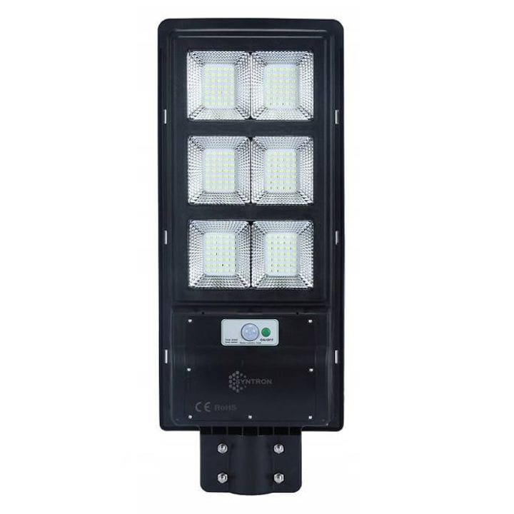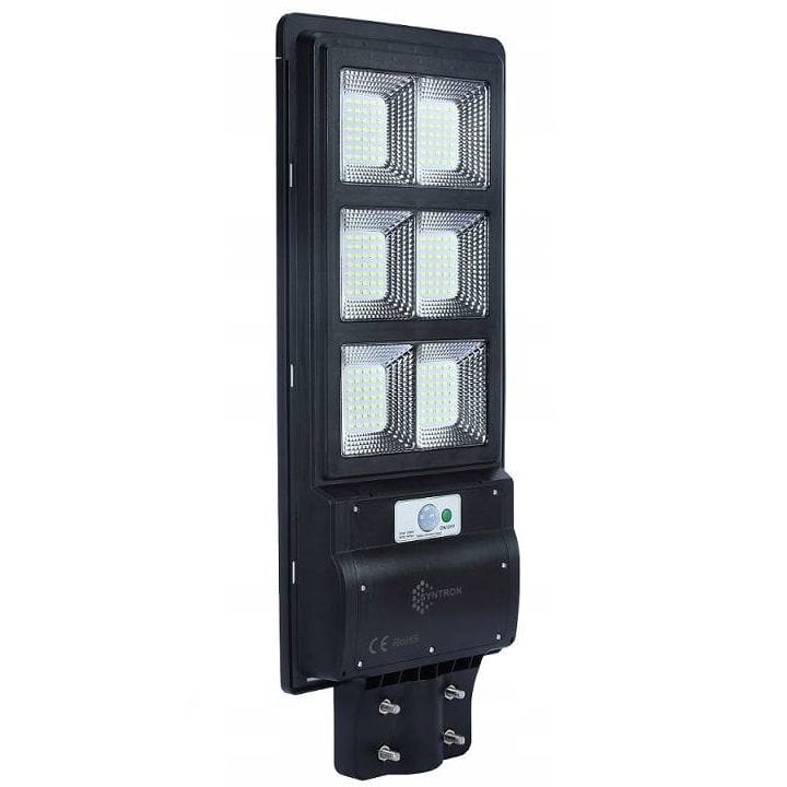Lampa solarna uliczna o mocy 240W z panelem solarnym, w zimnej barwie światła (6000K). W zestawie dołączony jest pilot oraz uchwyt.