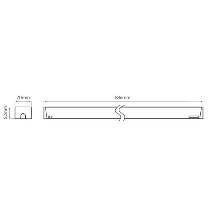 - wymiary (dł. x szer. x wys.): 586mm x 70mm x 52mm,