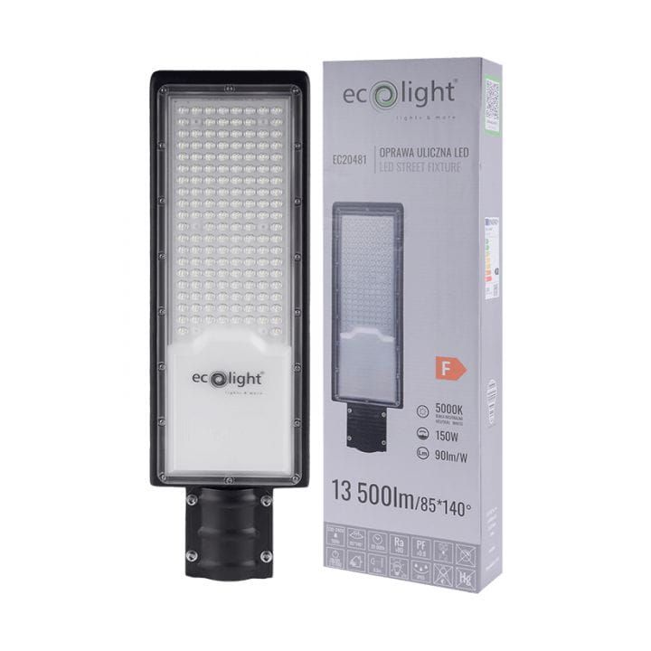 Lampa uliczna LED firmy Ecolight, z serii Economy, o imponującej mocy 150W oraz niesamowitej jasności 13500 lumenów, zapewniającej dzienną barwę światła.