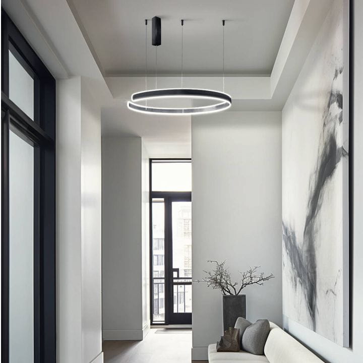 Lampa wisząca okrąg czarna wykonana została z najwyższej jakości materiałów. Lampa może świecić barwą ciepłą, neutralną, bądź zimną. Zmienia się ją za pomocą dołączonego pilota, za pomocą którego można zmienić także natężenie światła. Wiszący okrąg to doskonała propozycja dla osób, które szukają do swojego wnętrza nowoczesnych rozwiązań. Sprawdzi się jako oświetlenia salonu, sypialni, jadalni, a także do oświetlenia biur. Prócz głównej funkcji oświetleniowej, lampa jest również dodatkowym elementem dekoracyjnym.