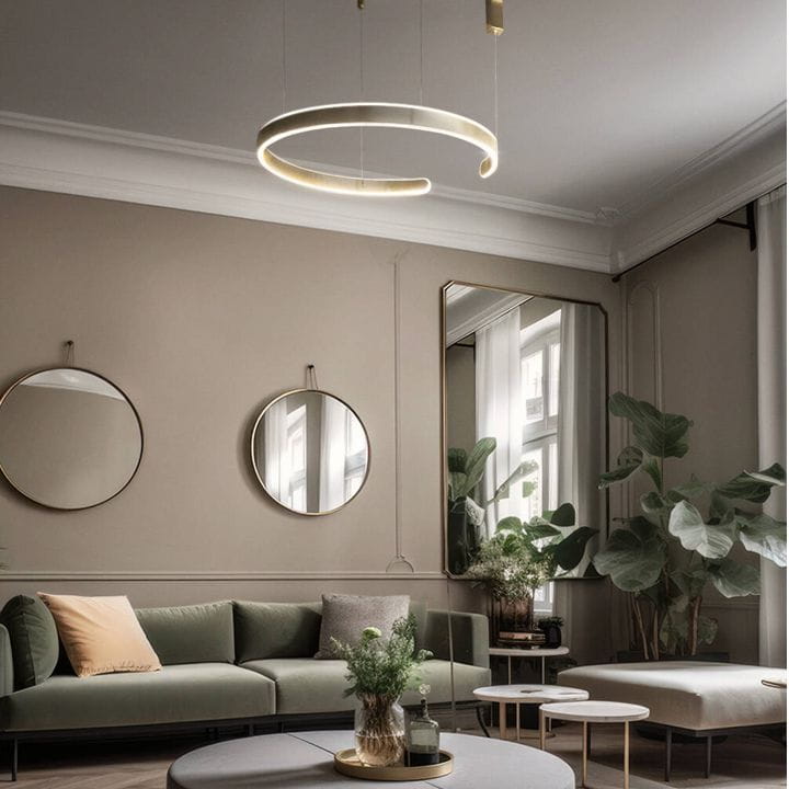 Złoty wiszący okrąg to lampa, która będzie dobrze prezentowała się w pomieszczeniach w stylu nowoczesnym i glamour. Wykonana z wysokiej jakości materiałów. Lampa wisząca posiada możliwość wyboru barwy światła: ciepła, neutralna oraz zimna. Barwę zmienia się za pomocą pilota. Złoty okrąg to idealna lampa dla osób, które lubią elegancję. Sprawdzi się jako oświetlenie salonu, bądź hotelu czy restauracji.