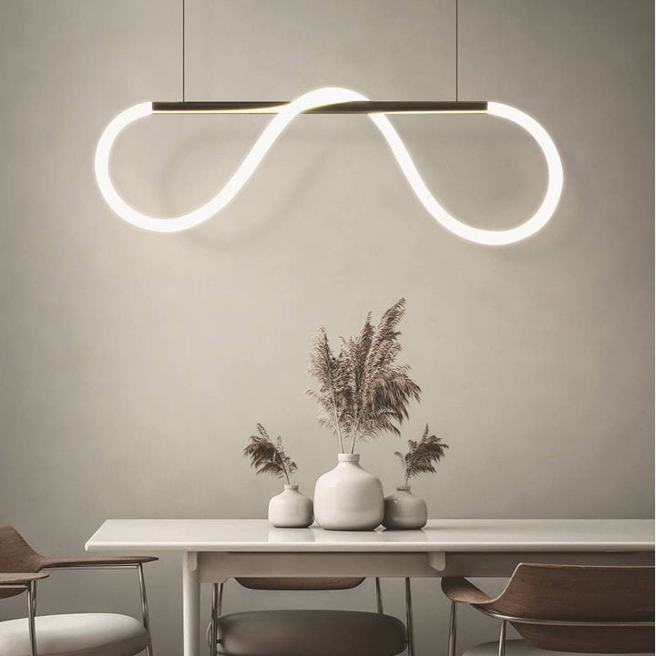 Złoty wężyk wpasuje się w jasne wnętrza w stylu glamour lub nowoczesnym. Jest to dodatkowy element dekoracyjny, który pełni funkcję oświetleniową. Lampę można zamontować jako oświetlenie wyspy kuchennej, stołu w jadalni, oświetlenie w restauracji czy hotelu.