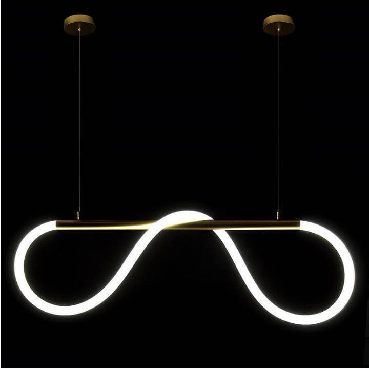 Żyrandol LED marki SYNTHRON w kształcie wężyka w kolorze złotym to połączenie funkcji oświetleniowej z elementem dekoracyjnym.
