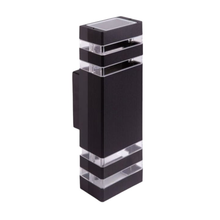 Oprawa elewacyjna OE-1C przystosowana na dwie żarówki z gwintem GU10, z wysokim stopniem szczelności IP54, w kolorze czarnym.