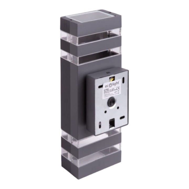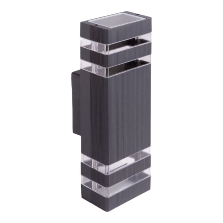 Oprawa elewacyjna OE-1S od firmy Ecolight, zaprojektowana na dwa źródła światła z mocowaniem GU10, z wysokim stopniem szczelności IP54, w kolorze antracytowym.