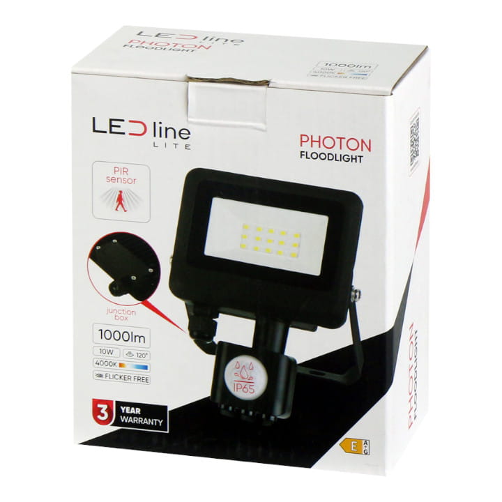 Profesjonalny naświetlacz halogenowy LED z wbudowanym czujnikiem PIR, o strumieniu świetlnym 1000 lumenów, w neutralnej barwie światła.