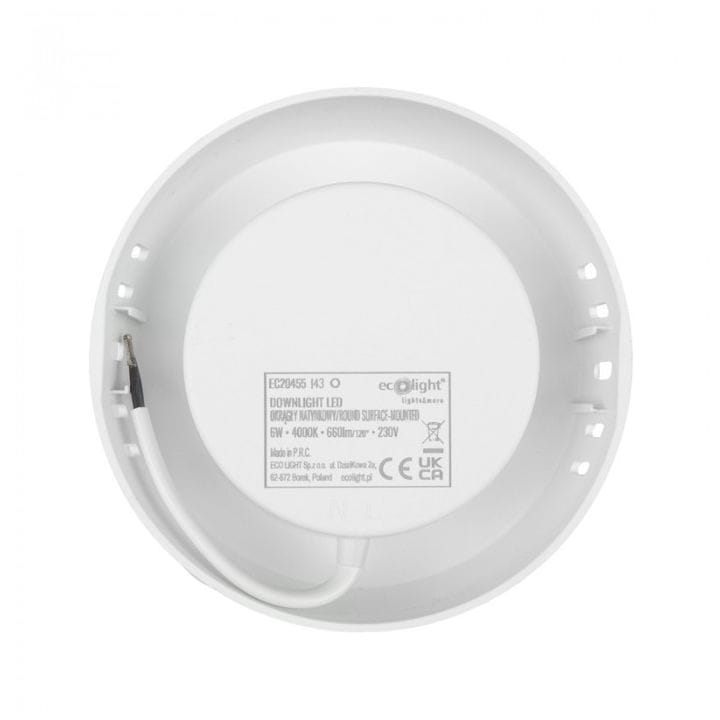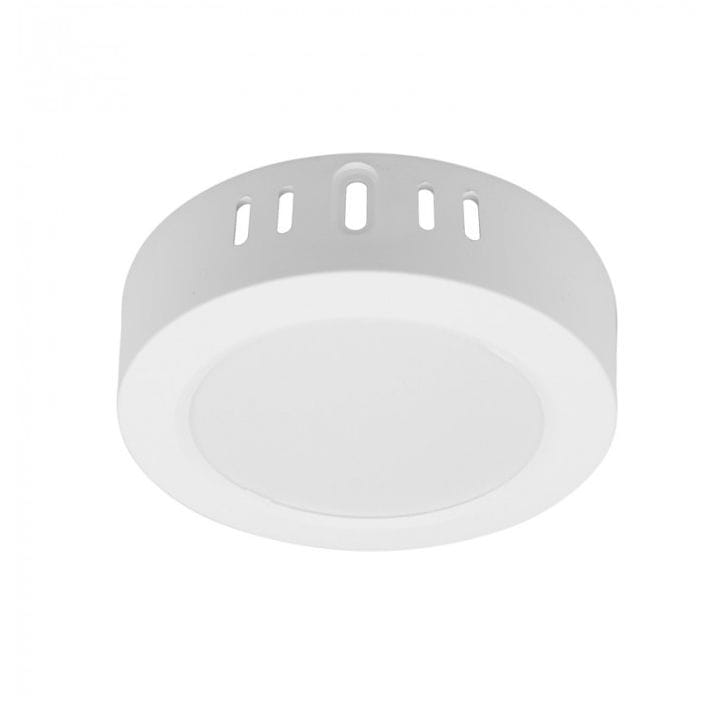 Okrągły panel sufitowy natynkowy o mocy 6W, jasności 660 lumenów, w barwie neutralnej.