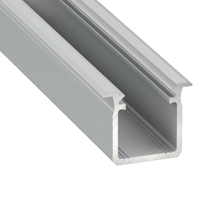 Profil aluminiowy LED typ G o długości 1 metra w kolorze srebrnym anodowanym, do montażu oświetlenia liniowego.