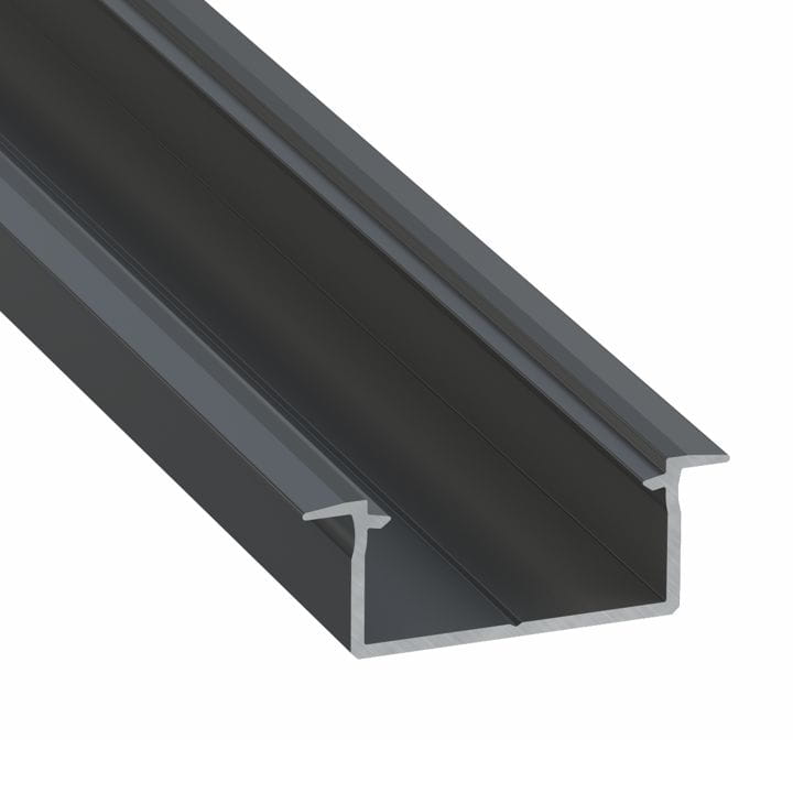 Profil aluminiowy do dwóch taśm LED typ GEMI, wpuszczany w kolorze czarnym, o długości 1 metra.