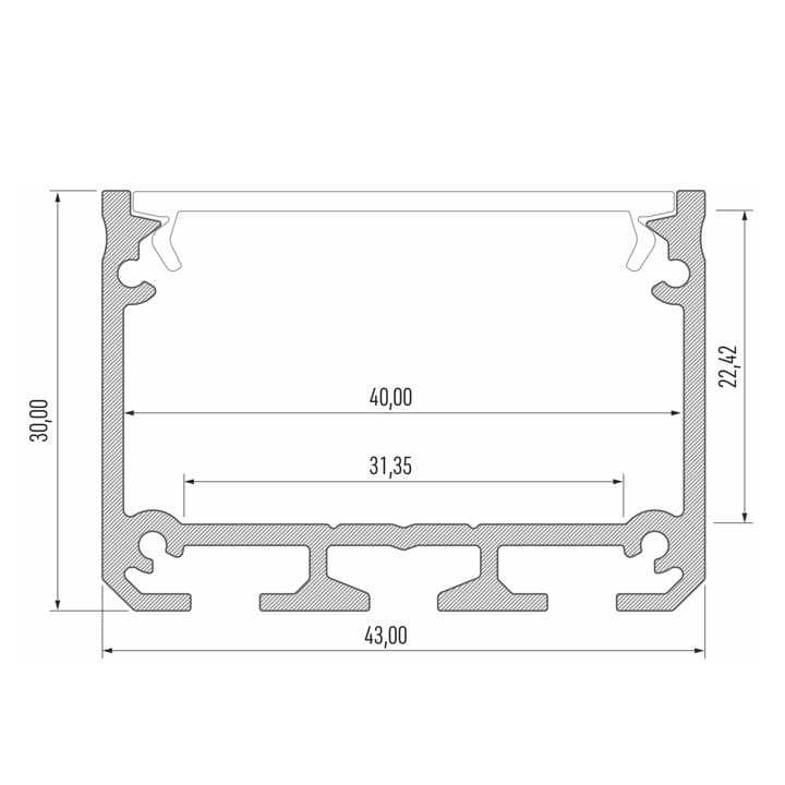 - szerokość wewnętrzna pod taśmę Led: 31,35mm,