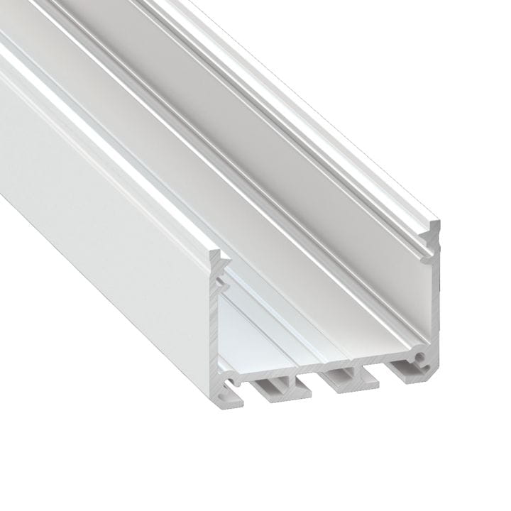 Biały lakierowany profil LED aluminiowy typ ILEDO do montażu nawierzchniowego o długości 2 metrów, z możliwością stworzenia oświetlenia wiszącego.