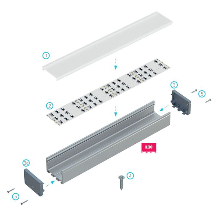 Profil nawierzchniowy ILEDO przystosowany jest do montażu bezpośrednio na wybraną powierzchnie, np. jako oświetlenie sufitowe w garażu, salonie, biurze oraz w sklepie. Do profilu można przymocować zawiesia, które ze zwykłego profilu nawierzchniowego tworzą oryginalne oświetlenie wiszące. Taką lampę można zamontować nad wyspą kuchenną lub nad biurkami w nowoczesnym biurze.
