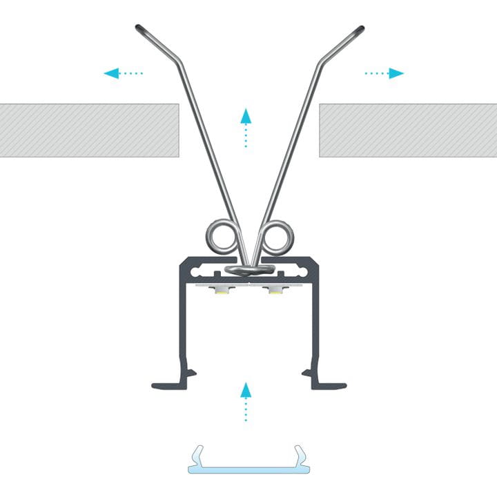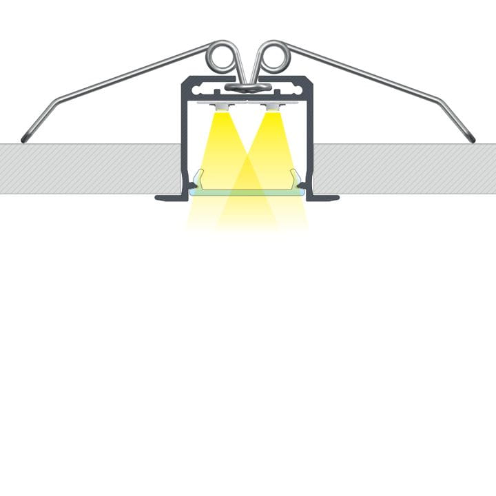 Profil LED aluminiowy inDILEDA jest profilem wpuszczanym, do montażu którego używa się sprężyn montażowych. Profil inDILEDA najczęściej stosuje się w biurach i budynkach przemysłowych: oświetlenie magazynów, wind, holi, hal sprzedażowych.