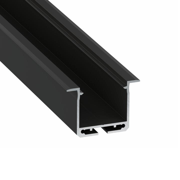 Profil LED wpuszczany aluminiowy typ inDILEDA w kolorze czarnym matowym, o długości 2 metrów, do montażu systemów oświetleniowych w biurach i budynkach przemysłowych.