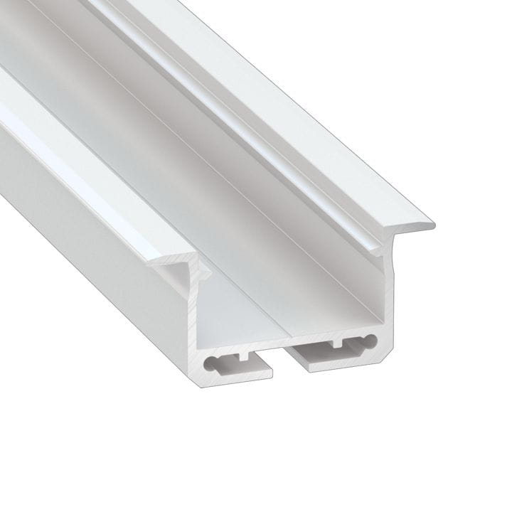 Profil LED wpuszczany typ inSILEDA o długości 1 metra, w kolorze białym lakierowanym do montażu ściennego i sufitowego w wyfrezowanych otworach.