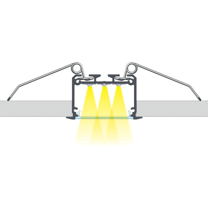 Profil INSO tworzy szerokie źródło światła, które sprawdzi się do oświetlenia biurowego i sklepowego. Będzie również doskonałą opcją do stworzenia oryginalnego oświetlenia liniowego na ścianie. Sprawi, że oświetlone wnętrze nabierze wyjątkowego i nowoczesnego stylu. Profil montuje się w wyfrezowane otwory na wcisk lub za pomocą kleju montażowego. Można także do montażu zastosować sprężyny montażowe.