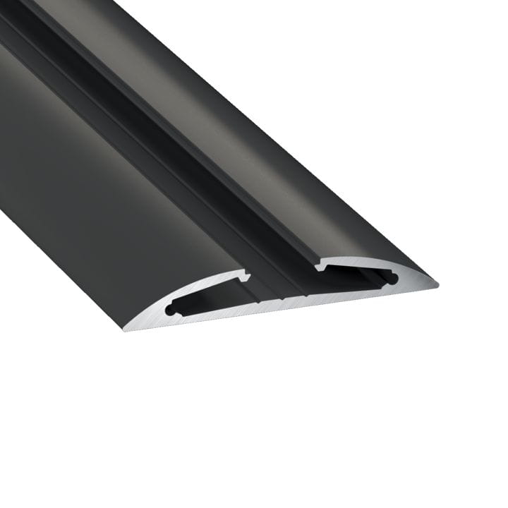 Profil LED aluminiowy typ RETO o długości 2 metrów, w kolorze czarnym do montażu nawierzchniowego w pomieszczeniach domowych.
