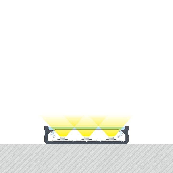 Profil LED architektoniczny SOILIS nawierzchniowy zaprojektowany został na trzy paski taśmy LED o szerokości 10mm.