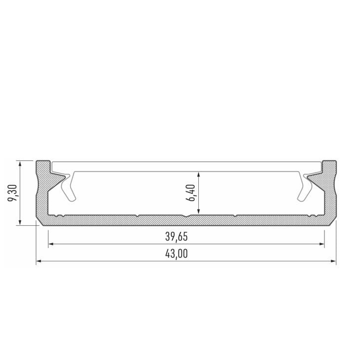 - szerokość wewnętrzna pod taśmę Led: 39,65 mm,
